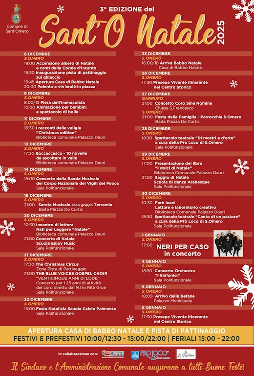L’atmosfera di festa proseguirà poi lunedì 5 gennaio con l’attesa Fiera dell’Epifania, nei primi giorni di gennaio sono tradizionalmente confermati anche concerti di musica classica e sacra ospitati nei teatri storici e nelle chiese del centro.