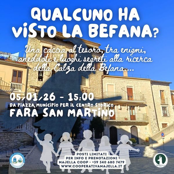 E spostandoci nell’entroterra non perdere la Befana a Fara San Martino con la Caccia al Tesoro, la stessa a Guardiagrele e a Lama dei Peligni.