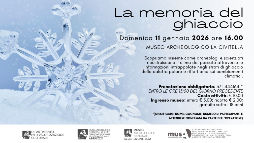 Domenica 𝟭𝟭 gennaio 𝟮𝟬𝟮𝟲 ore 𝟭𝟲.𝟬𝟬 presso il Museo Archeologico La Civitella, c’è un incontro per scoprire come archeologi e scienziati ricostruiscono il clima del passato attraverso gli strati di ghiaccio della calotta polare, riflettendo insieme sui cambiamenti climatici, con prenotazione obbligatoria entro le ore 13.00 del giorno precedente.