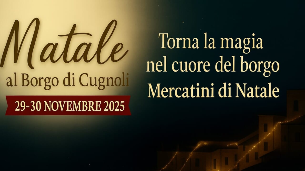- Cugnoli: il borgo di Cugnoli (PE) si trasforma in un mondo incantato per due giorni, ospitando un evento natalizio ricco di magia, luci e tradizioni, espositori, creazioni artigianali, addobbi, musica e profumi di festa. Date: 29–30 novembre 2025 dalle ore 10:30 alle 19:30